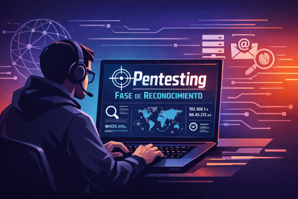 En un Pentesting Fase de Reconocimiento implica recopilar información sobre la infraestructura tecnológica, los empleados y los servicios expuestos. Es el momento en el que se define el mapa de ataque, permitiendo que el auditor de penetración identifique qué activos son más vulnerables.