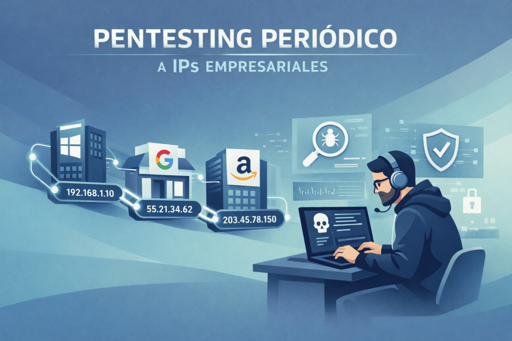 En un entorno digital donde las direcciones IP empresariales están expuestas de forma constante a escaneos automatizados, intentos de intrusión y campañas de explotación masiva, confiar únicamente en medidas reactivas ya no es suficiente. El pentesting periódico a IPs empresariales se convierte en un mecanismo esencial para evaluar la seguridad real de la red, validar configuraciones y garantizar que los controles implementados funcionan como se espera.